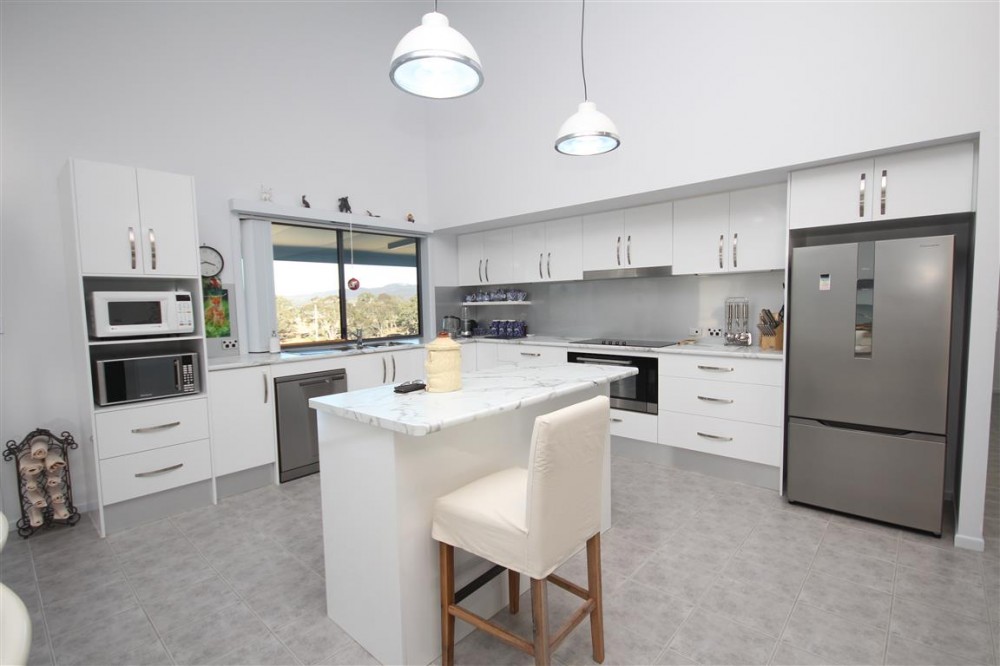 Comprising ultra modern and very attractive electric kitchen with large walk in pantry, classy drop down lighting, dishwasher and breakfast Island which overlooks the generous lounge / dining with wood heating and r/c air and naturally heated by the magnificent fully glassed side and front verandah, 2 bedrooms with plenty of wardrobe space, bathroom and large laundry.