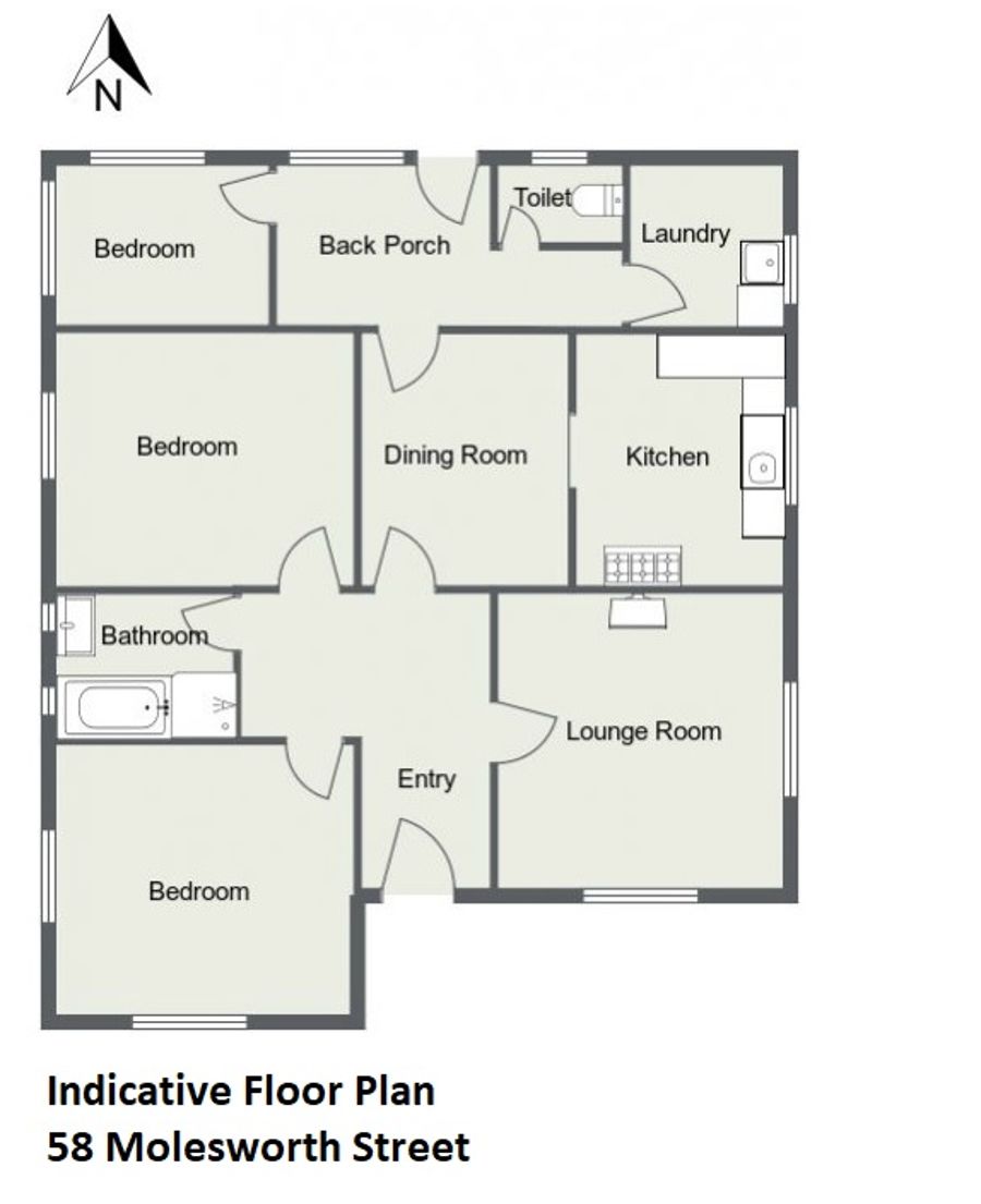 Entering the home you will be charmed with the wide hallway featuring timber floors, lounge room with wood / gas heating and high ceiling, dining room, original kitchen with wood fuel stove, 2 good sized bedrooms plus a small third or office, enclosed back porch, bathroom with shower, bath, separate toilet and laundry.