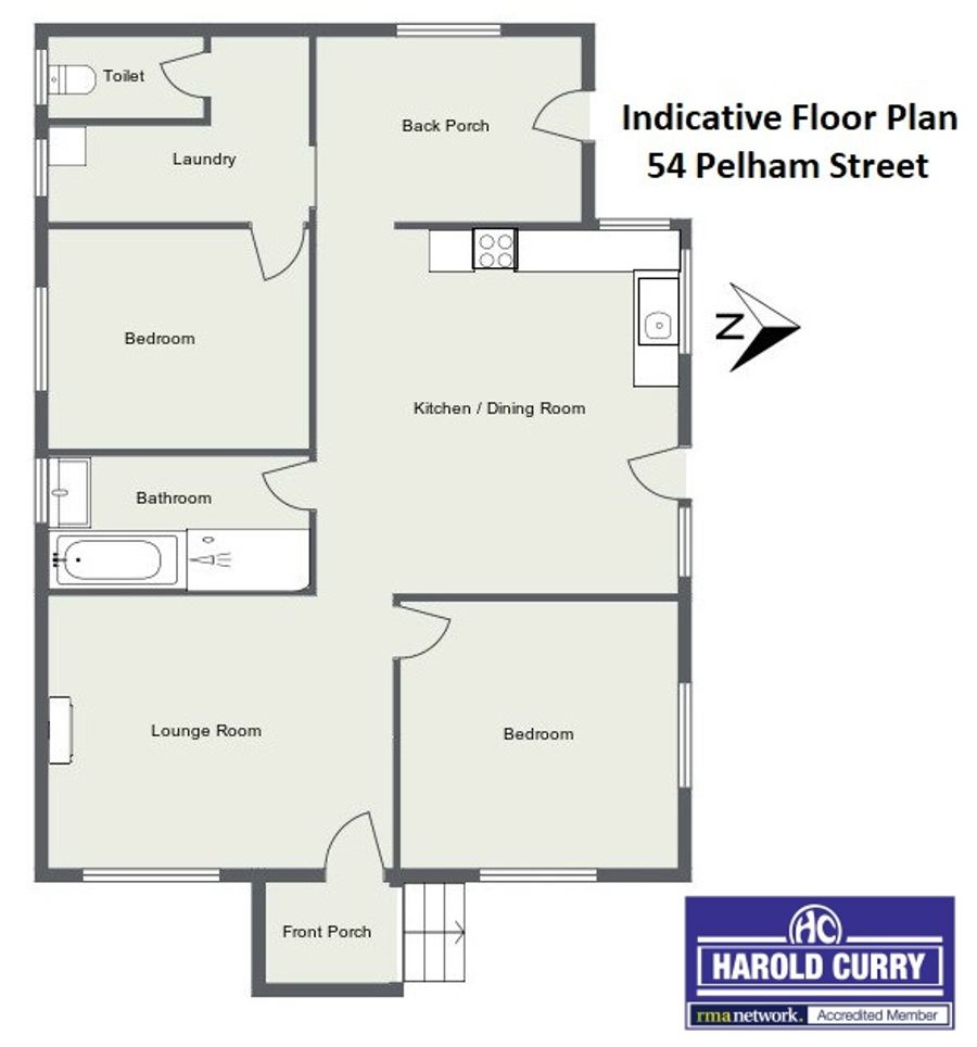 Comprising two bedrooms, open plan electric kitchen, combined dining / lounge room with combustion wood heater, bathroom with shower and bath, separate toilet and laundry.