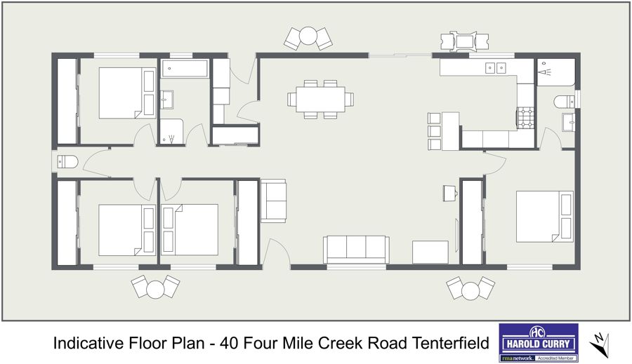 The home comprises 4 bedrooms, all with built-in robes, main with ensuite, open plan living / dining / kitchen with easy access to both the front and rear surround verandah, main bathroom, separate toilet and laundry.